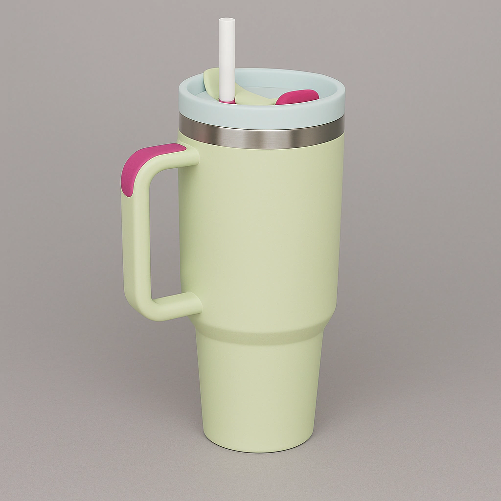 Este termo tipo quencher combina diseño y funcionalidad. Con una capacidad de 1,2 litros, es ideal para mantenerte hidratado durante todo el día. Fabricado en material resistente, cuenta con tapa a rosca segura, sorbete reutilizable de plástico y un asa lateral ergonómica que facilita su transporte. Su diseño moderno lo convierte en una opción perfecta tanto para el uso diario como para actividades al aire libre.